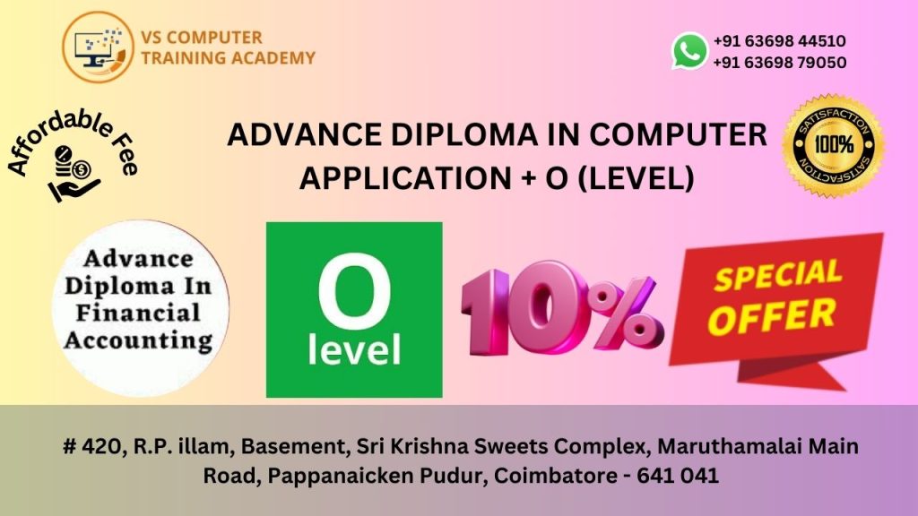 The ADCA + O Level Course at VS Computer Training Academy is a comprehensive and career-oriented program designed for students, job seekers, and professionals who want to gain advanced computer knowledge along with strong IT fundamentals.